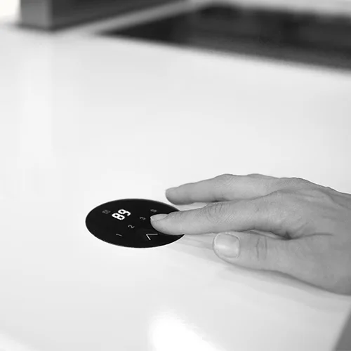 The DPT is a high-end desk panel designed to operate lifting columns in adjustable desk or kitchens. Come with touch buttons, memory and digital display showing actual height, diagnostics and error codes.
