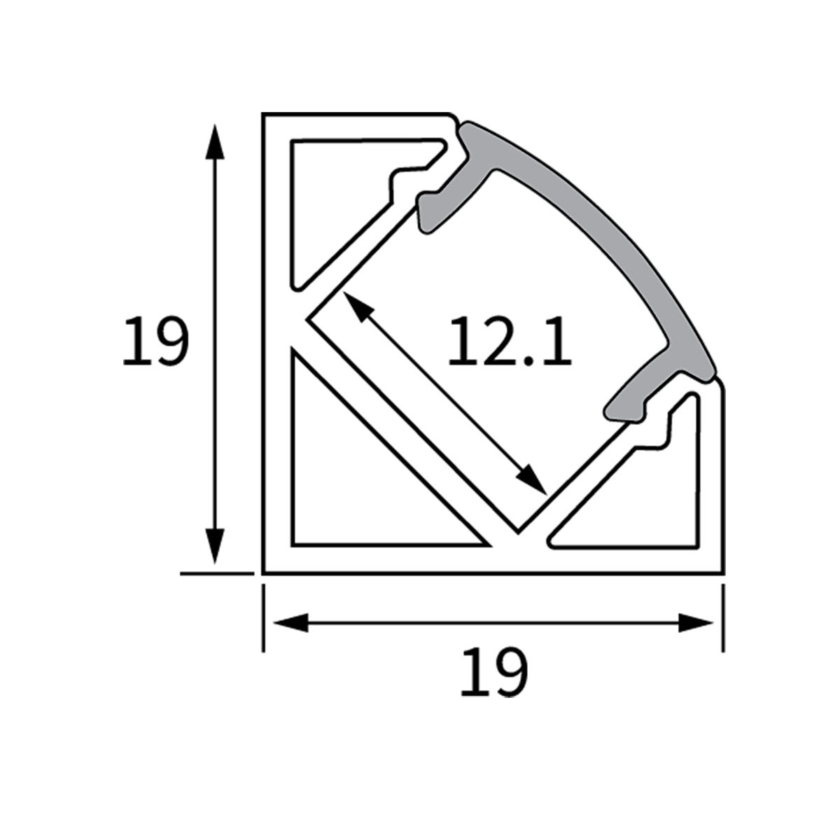 MODAR LED PROFILE 1919 CORNER 19X19MM BLACK FROST COVER 3 METRE