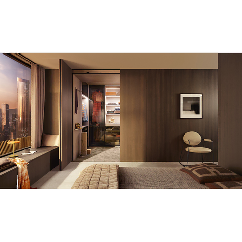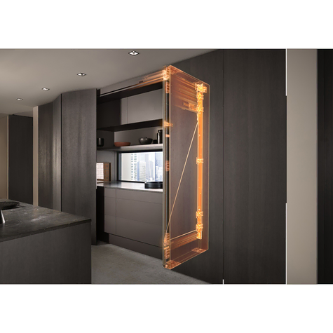 REVEGO uno, the slide-in door system for single doors with fully integrated technology, excels in terms of simple manufacturing and assembly. Standardised pocket widths of 100 mm make planning of REVEGO uno simple. The single door application REVEGO uno can be used independently or combined with the double door application REVEGO duo or with another REVEGO uno.
